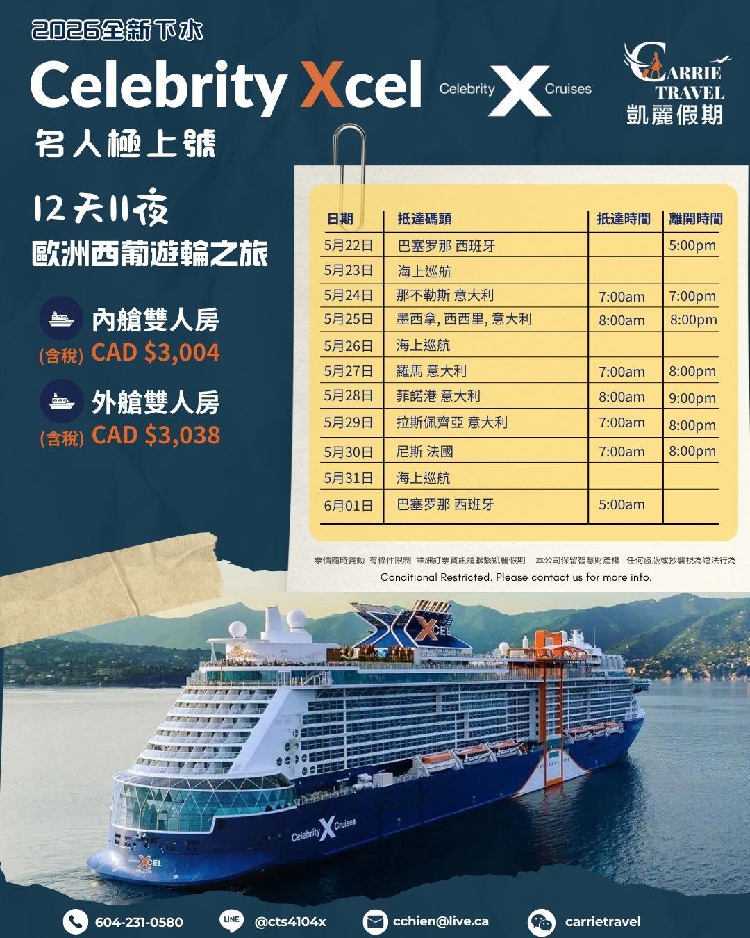 同樣從巴塞隆納啟航,但這趟帶你深入葡萄牙與西班牙:丹吉爾、里斯本、波爾圖、帕爾馬,一次收錄南歐的陽光與葡萄酒魅力。