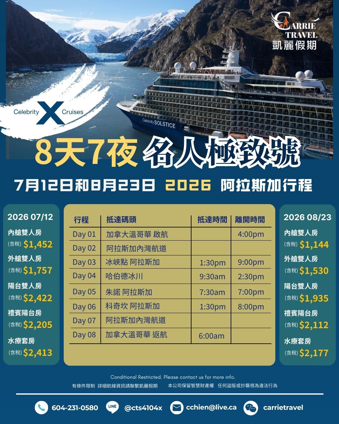 / 2026 名人極致號 · 阿拉斯加夢幻郵輪 2026年7月12日, 8月23日出發