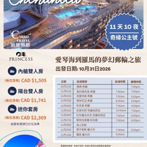 2026 奇緣公主號 愛情海到羅馬夢幻郵輪之旅 2026年10月31日