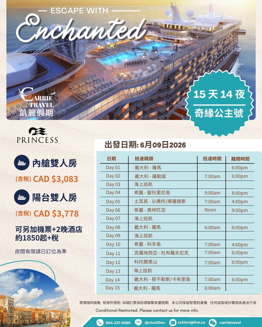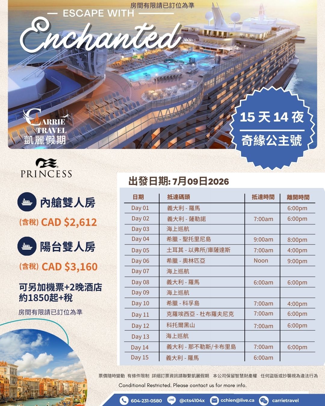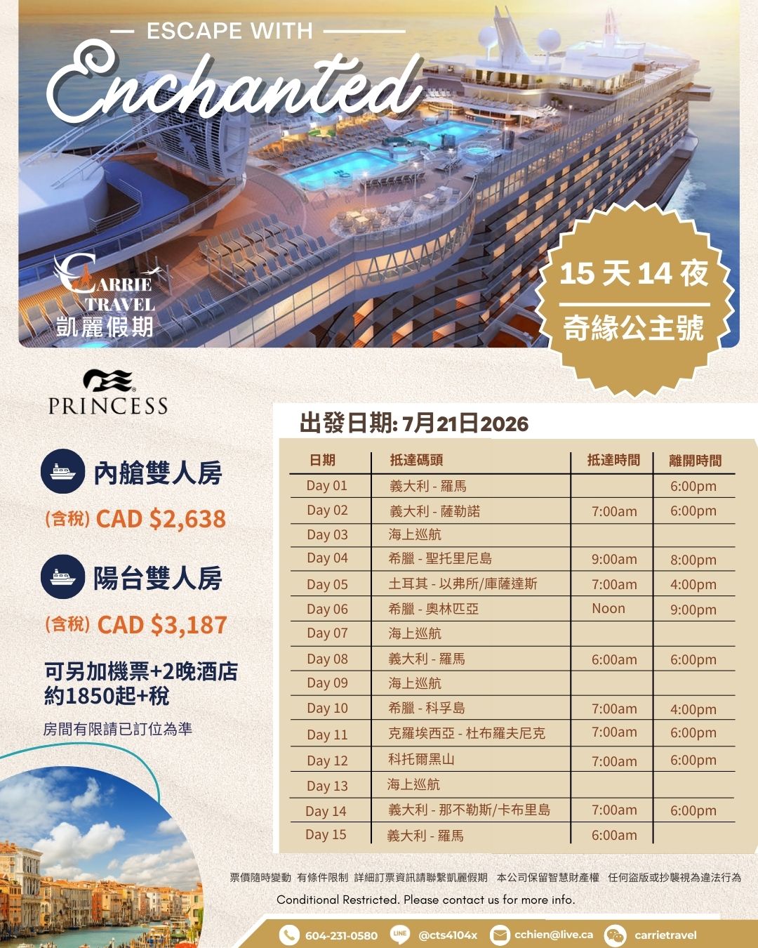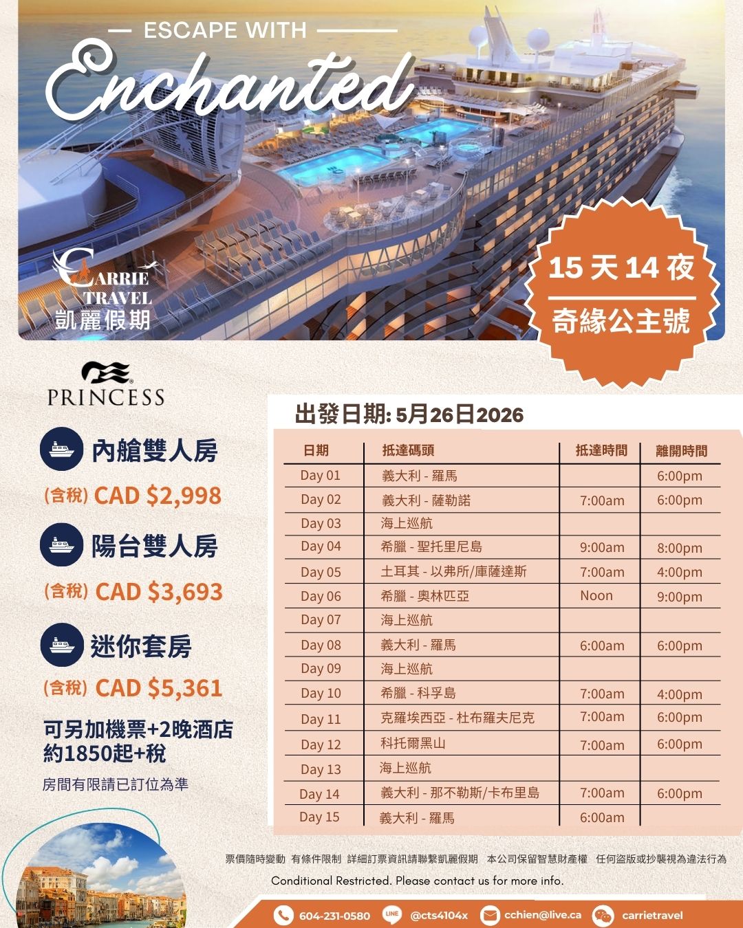 / 2026 奇緣公主號 歐洲夢幻郵輪之旅 2026年5月26日, 6月09日, 7月09日 和 7月21日出發