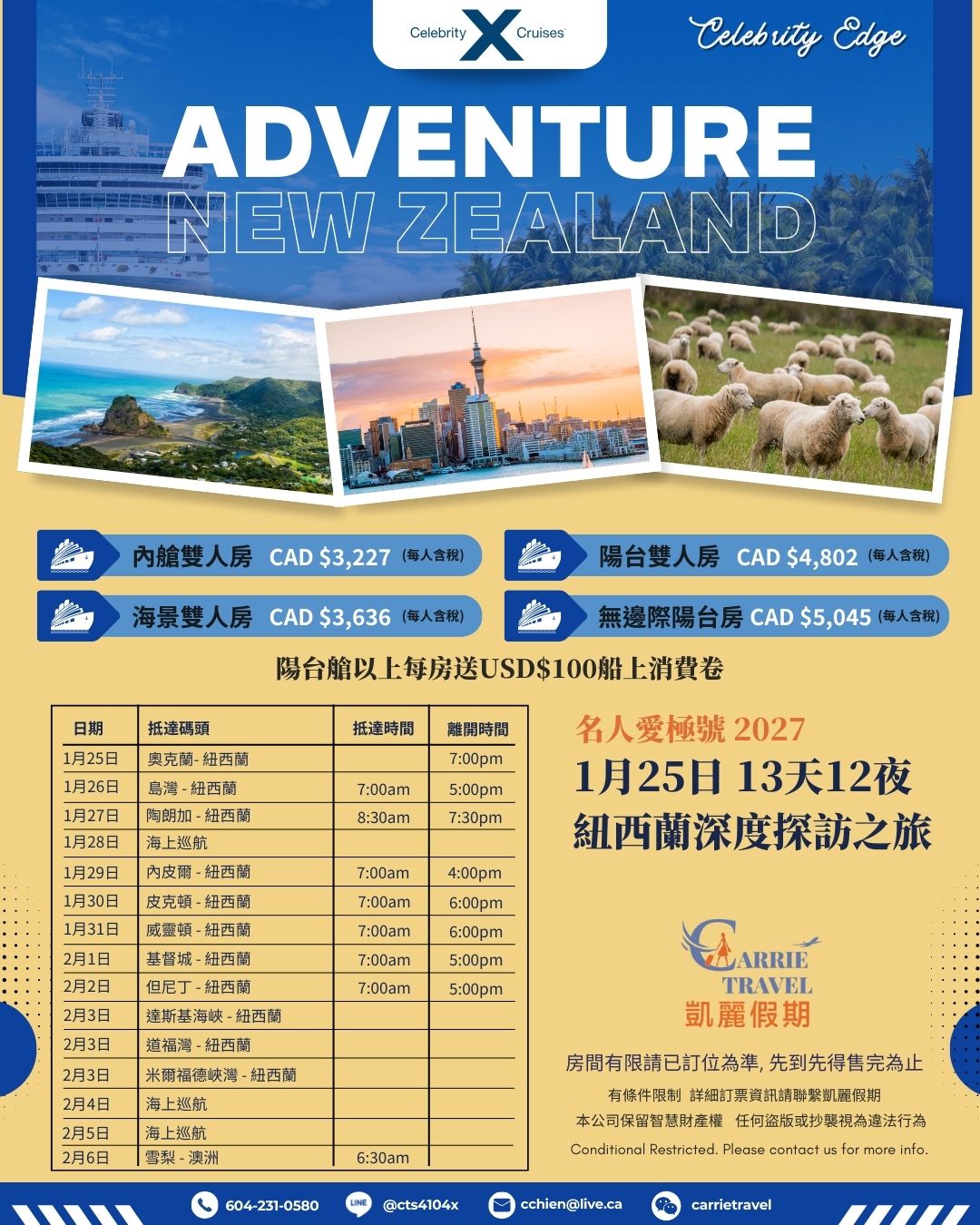 🌏✨ 2027 紐西蘭深度探訪之旅|名人愛極號 Celebrity Edge ✨🌏